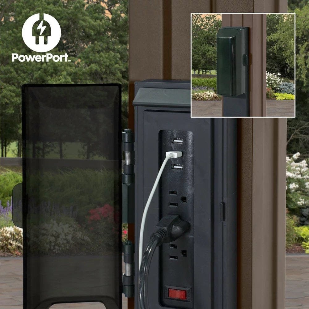 - POWERED UP: Exclusive removable PowerPort™ features 3 electrical outlets and 3 USB ports that is transferable to any post on the structure. PowerPort™ can be used for charging devices, lights and more. PowerPort™ requires a power source to be functional (not included)