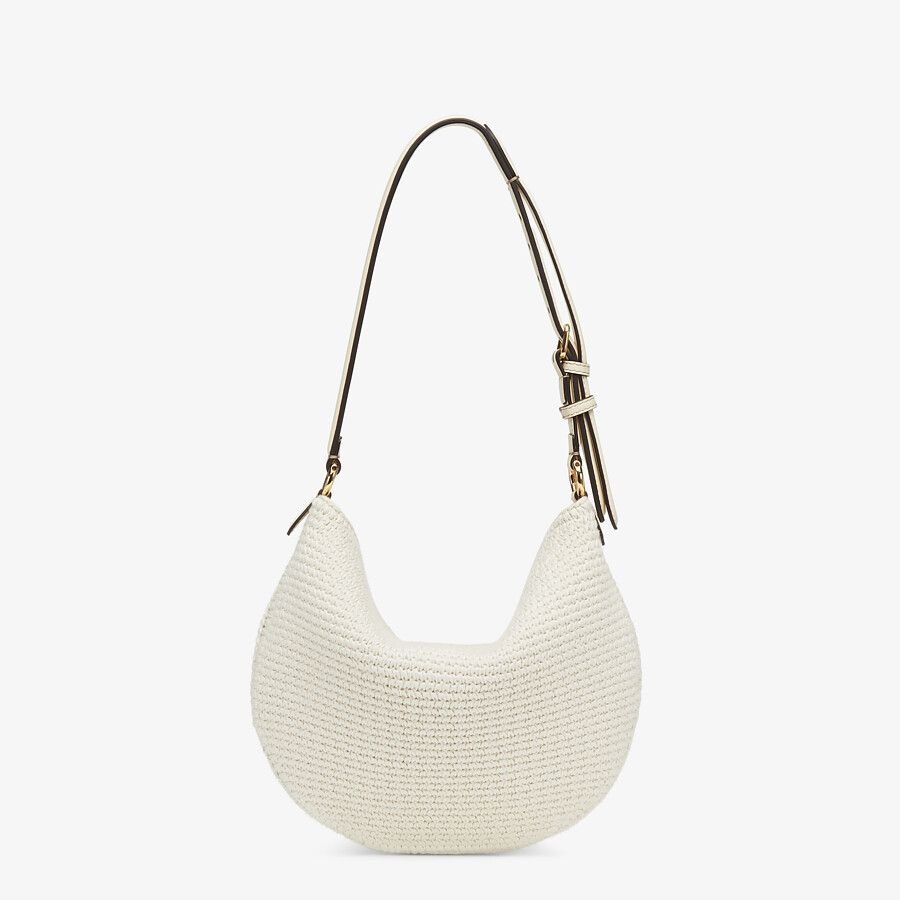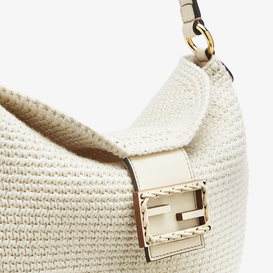 Small Croissant hobo bag made of pink cotton and trimmed with tone on tone leather details. Decorated with an FF clasp.