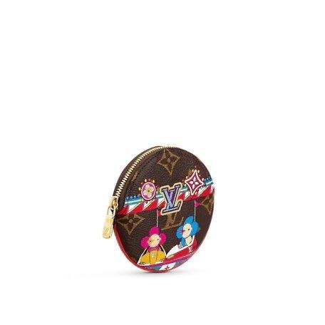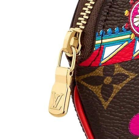 The Round Coin Purse in Monogram canvas is decorated with an illustration of L.V’s Vivienne mascot for this special Christmas 2020 version. The completely happy motif shows Vivienne riding the bumper motors at a funfair. This adorable, colorful accessory captures the spirit of the season and makes an excellent present.