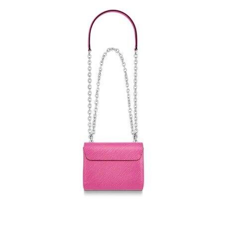 The Twist Mini handbag, with its contemporary interpretation of the traditional L.V Twist lock, is crafted from Epi grained leather with a sliding silver-tone chain. The new mini-version of the long-lasting Twist layout is perfect for a day-to-night use. Its ingeniously designed “wave” base expands to save more requirements.