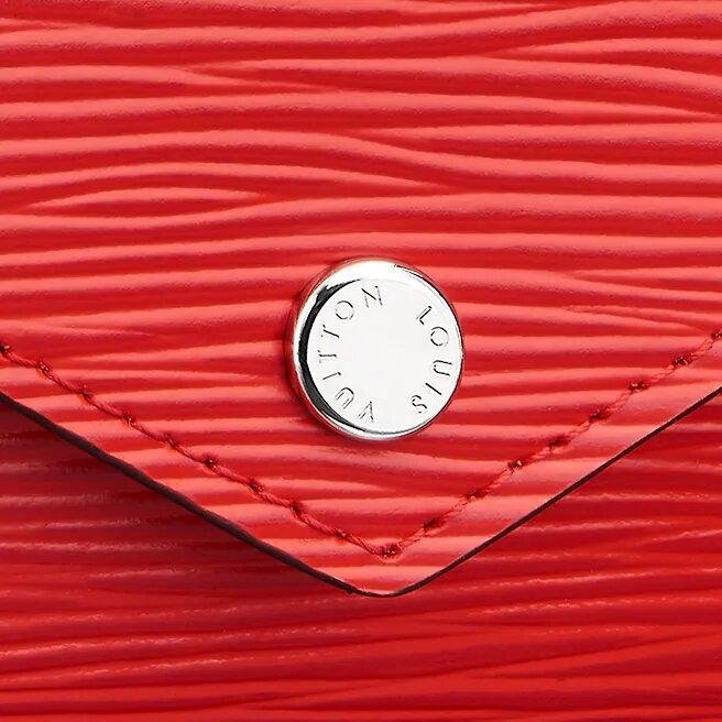 Crafted from L.V’s signature Epi leather, the Victorine wallet combines femininity with functionality. Its compact layout opens out to expose numerous card slots, a pocket for bills and a zipped coin compartment at the facet. The envelope-fashion flap is secured with an engraved press-stud in silver-tone metal.