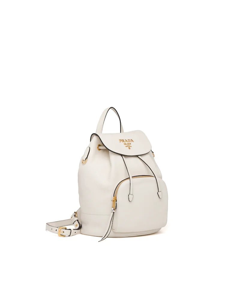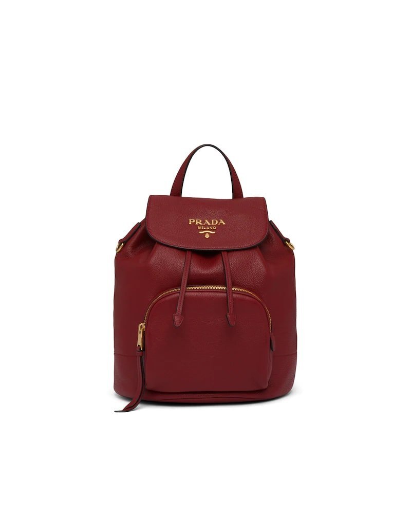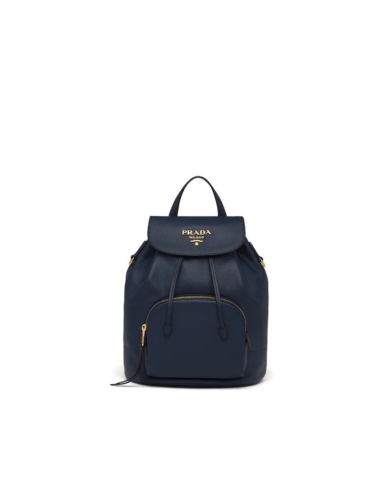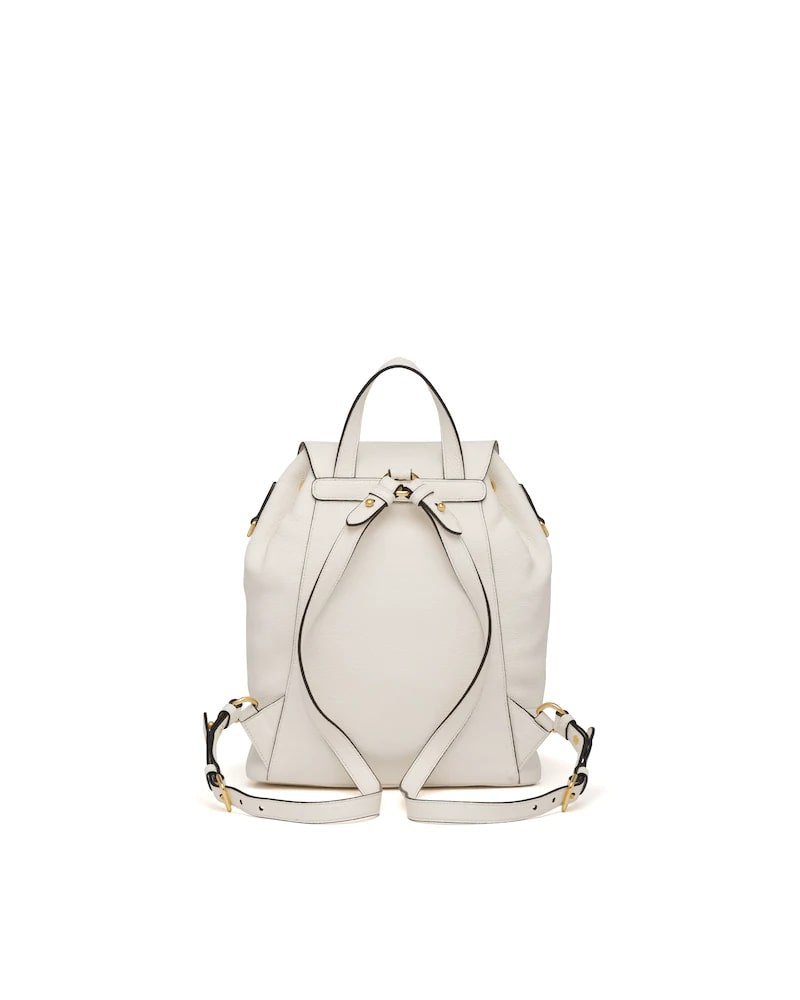 This roomy leather backpack is decorated with the metal logo. The leather straps are detachable and adjustable.