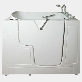 The Mb Tubs Premium Wheelchair Transfer Walk In Bathtub was designed to provide a safe and luxurious way for those who are wheelchair bound to bathe comfortably in the home and maintain their independence. This model allows bathers to transfer seamlessly from a wheelchair or seat into the tub through the tub’s specially designed 34-inch doorway just by sitting down on the tub seat and swinging in their legs. ADA compliant ergonomics and plumbing fixtures ensure a comfortable experience. The grab bar is strategically placed where you need them for maximum support and safety. You can choose from left or right hand side door and drain. Comes with 18 heated therapeutic air jets, 6 pressure point water jets and a heated backrest to keep you warm as the water fills and drains.
