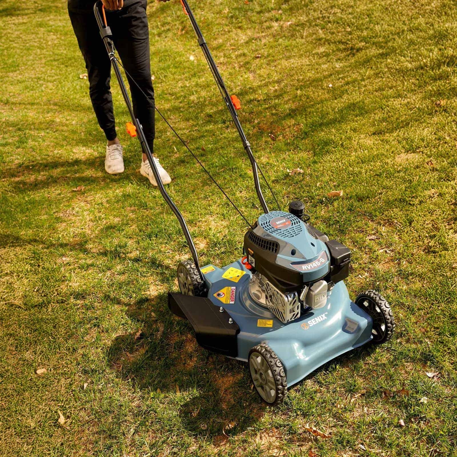 The SENIX 18-inch Gas Push Lawn Mower is a compact, reliable cutting solution designed for small to mid-sized residential lawns. Powered by a durable 144cc 4-cycle engine, it delivers consistent performance without the hassle of mixing fuel and oil. The 18-inch steel cutting blade and 19-inch deck width allow efficient trimming around landscaping boundaries, tight spaces, and narrow yard areas.