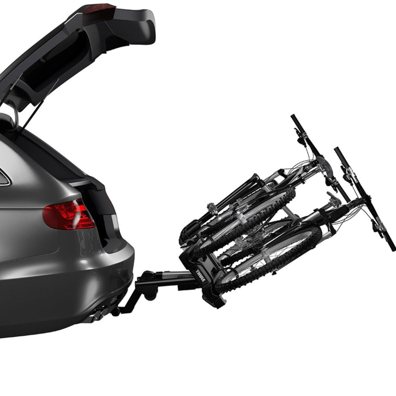 - Easy mounting of bikes through detachable bike arms with lockable Thule AcuTight torque limiter knobs that click when optimal torque is reached