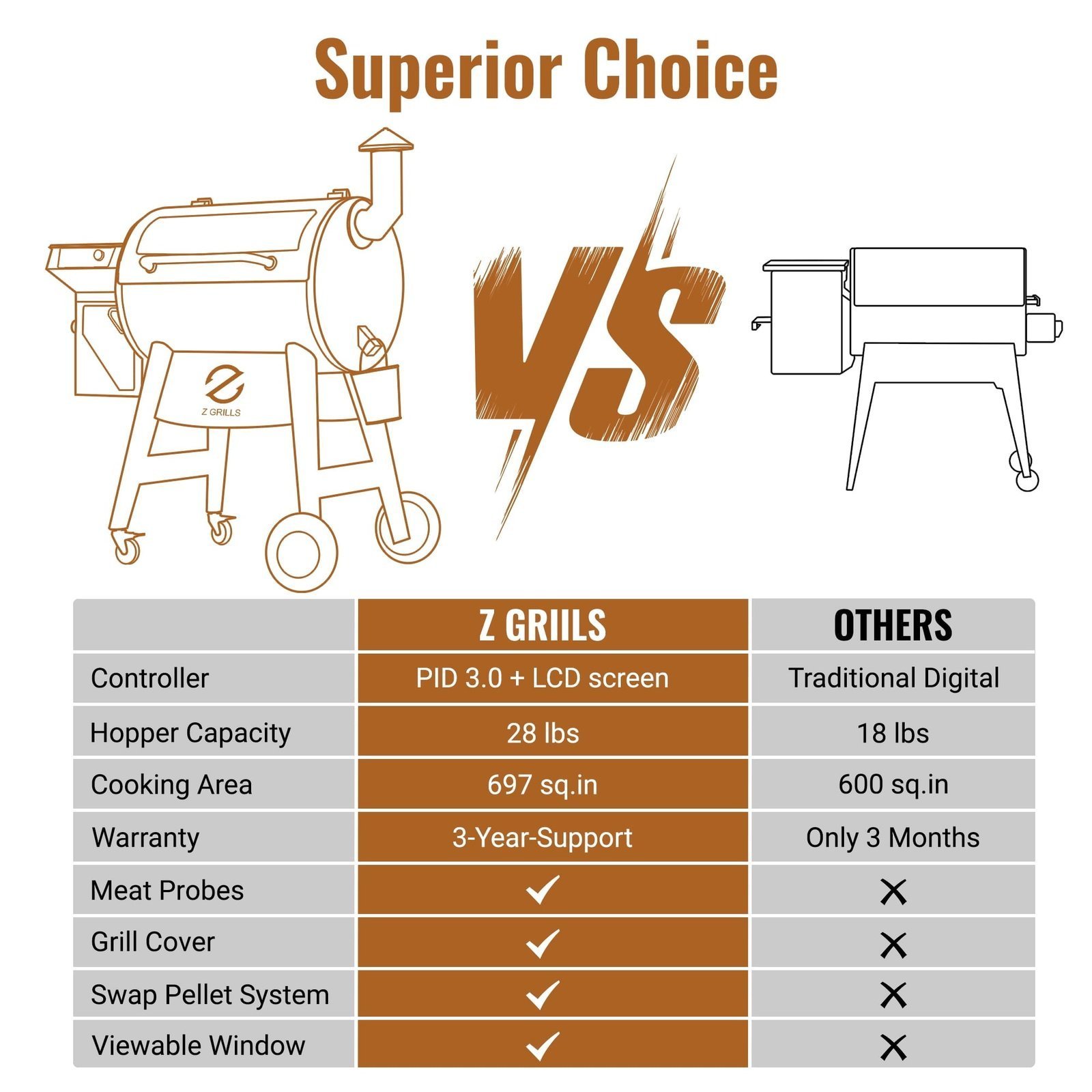 Get ready to master the art of grilling with the 7002C3E Wood Pellet Grill. This is the go-to grill for any outdoor cooking enthusiast thanks to its unmatched precision, reliable performance, and ease of use. This 7002C3E model has sturdy construction equipped with a stainless steel lid retains heat, 697 sq in. total cooking area, resists corrosion, and makes the pellet grill long-lasting. And provides 3-year quality assurance for products – perfect for the neighborhood block party or any time that you need to feed a crowd.